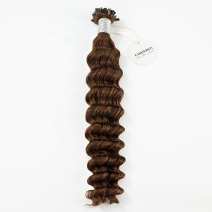 5. Deep Wave Flat Tip Hair Extensions Keratin Bonds #6 Light Brown Human Hair 100 Strands