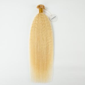 9. Kinky Straight V Tip Hair Extensions #613 Bleach Blonde Human Hair 100 Strands