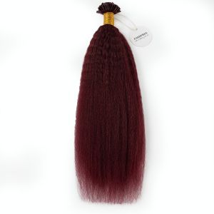 10. Kinky Straight V Tip Hair Extensions #99J Human Hair 100 Strands