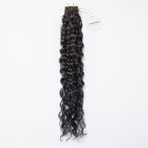 7. Curly Tape In Hair Extensions #1B/Grey Human Hair 20 Pieces