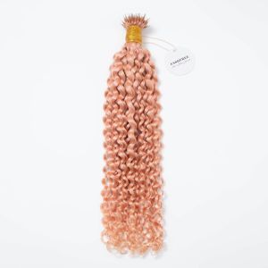 1. Curly Nano Ring Hair Extensions Pink Human Hair 100 Strands