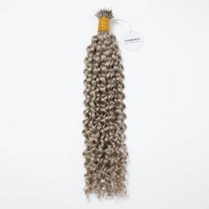2. Curly Nano Ring Hair Extensions Grey Human Hair 100 Strands