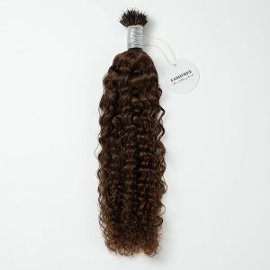 4. Curly Nano Ring Hair Extensions #8 Ash Brown Human Hair 100 Strands