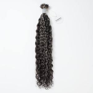 7. Curly Nano Ring Hair Extensions #1B/Grey Human Hair 100 Strands